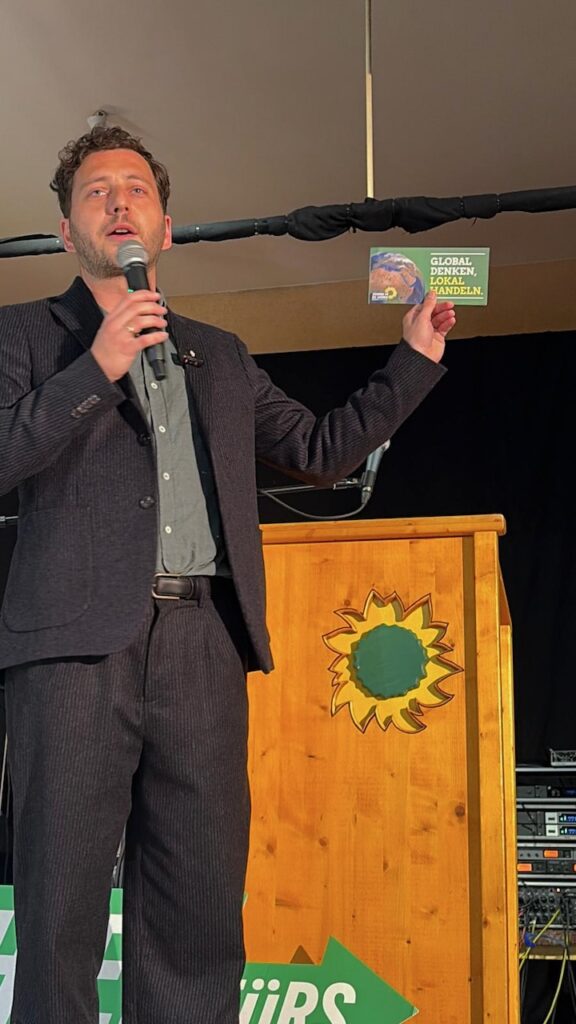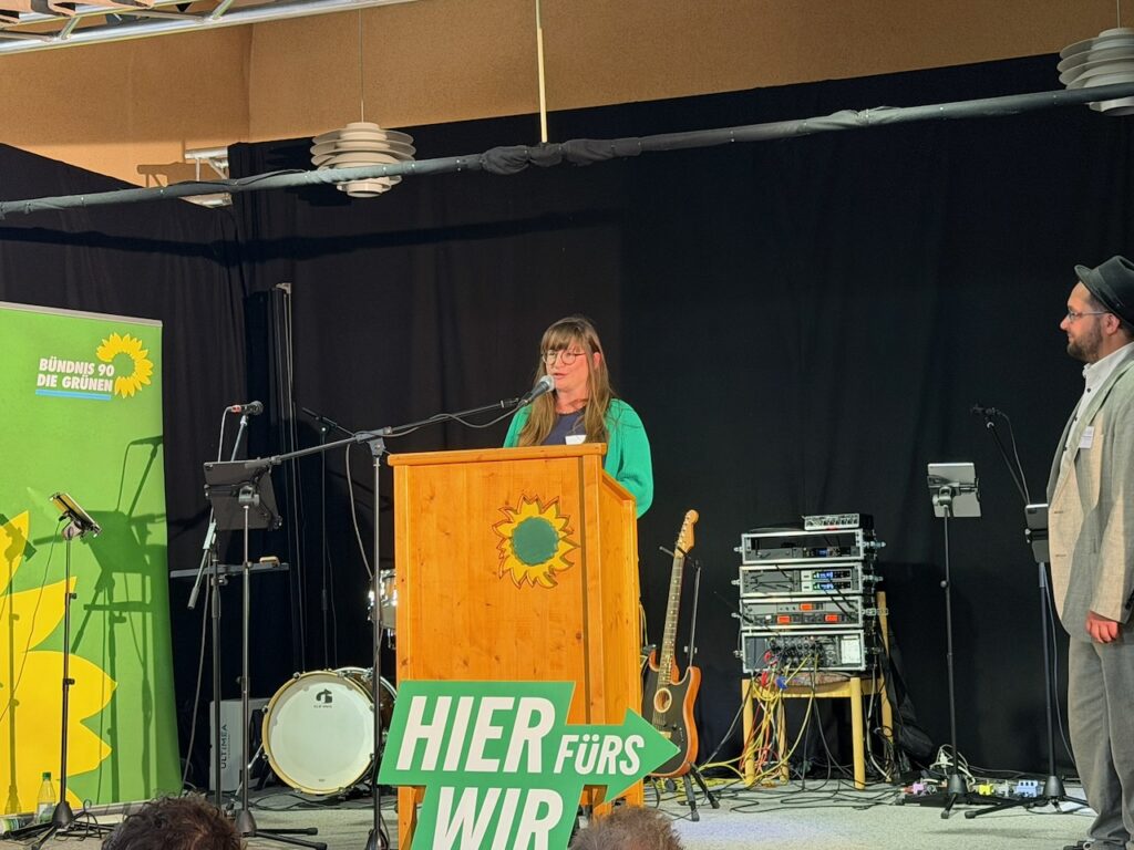 Banaszak betonte in seiner Rede die Dringlichkeit einer sozial-ökologischen Verkehrs-Wende, die keine Region zurücklasse: „Die Herausforderungen unserer Zeit – Klimakrise, bezahlbares Wohnen, sichere Arbeitsplätze, gerade in der Großindustrie – lassen sich nur gemeinsam bewältigen. Schweinfurt zeigt heute, wie vielfältig und kraftvoll grüne Politik vor Ort wirkt, wenn sie auf breite Bündnisse setzt.“ Er machte dies deutlich an einem Beispiel aus seiner Heimat Duisburg. Mitarbeiter der Stahlindustrie gingen damals mit grünen Westen auf die Strasse um für die Möglichkeiten der „Grünen CO2 neutralen Stahlerzeugung“ zu werben.